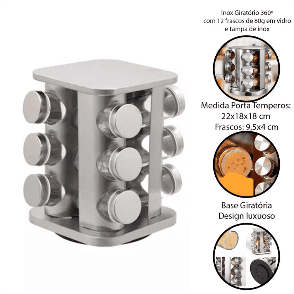 - Base Giratória : Encontre qualquer tempero com facilidade.